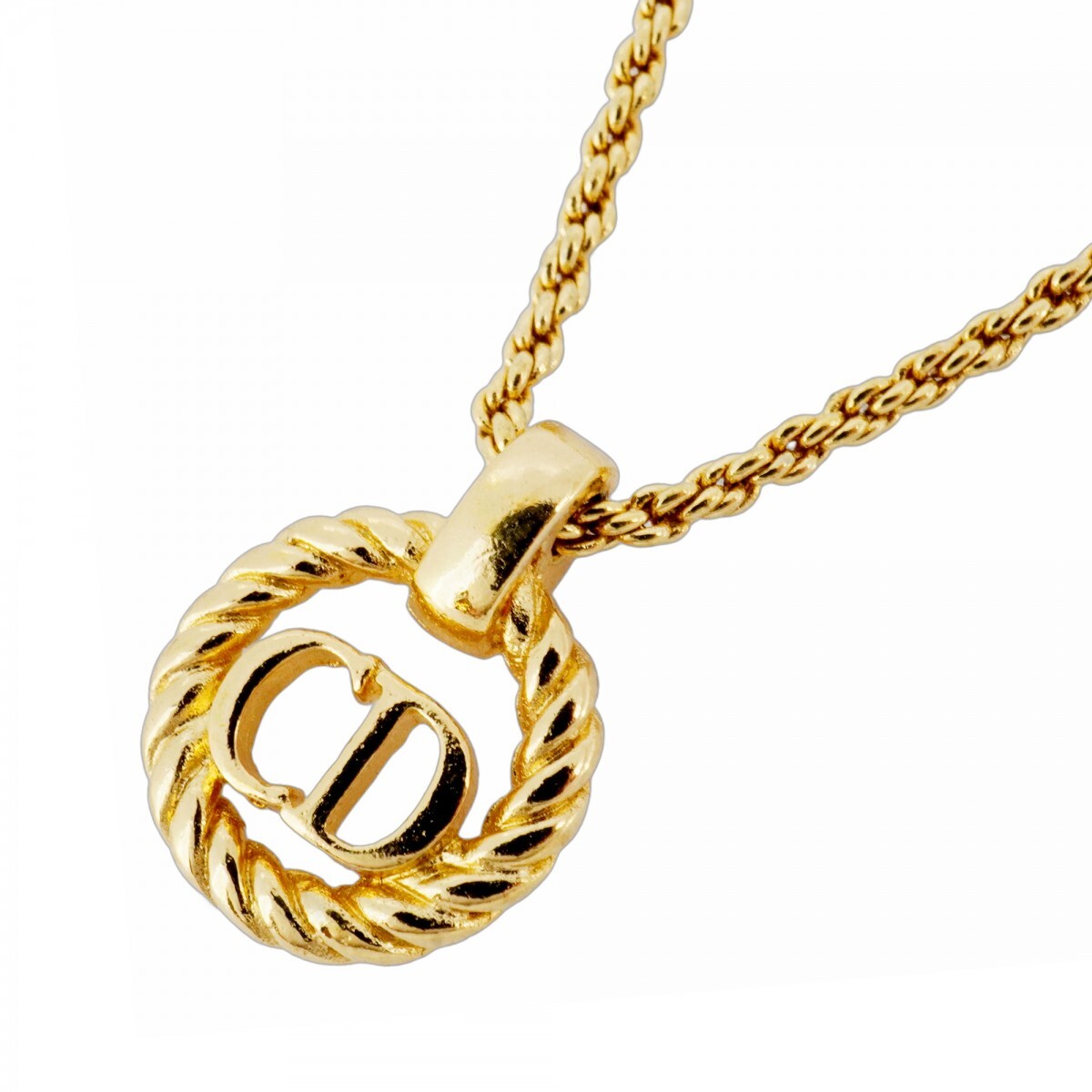 > 【5jmb0784】クリスチャンディオール ネックレス CDロゴ 丸型 サークル GPメッキ ゴールド【中古】レディース