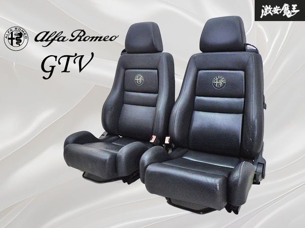 > アルファロメオ 純正 GTV フロント シート ドライバーズシート アシスタントシート 運転席 助手席 シートレール 付 2脚 黒革 レザー 棚42H