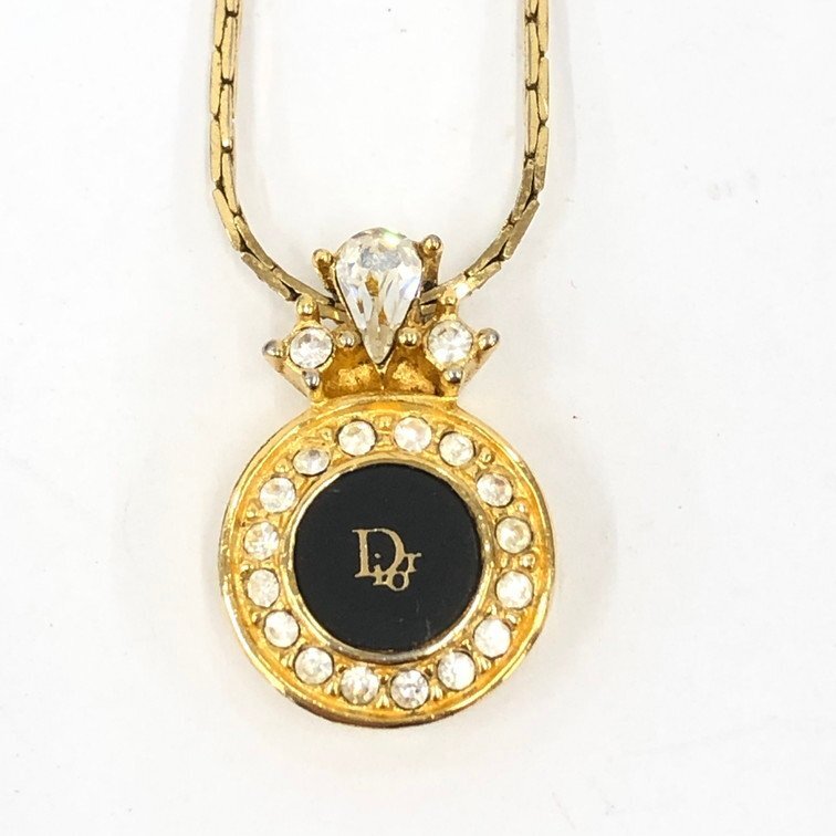 - Christian Dior クリスチャンディオール ロゴ ラインストーン ネックレス 【DKAG3039】