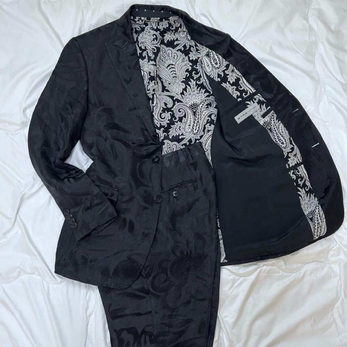> 至高の一品 ETRO エトロ 両面総柄 裏地ペイズリー スーツ セットアップ リネン シルク混 上下セット 48 L相当