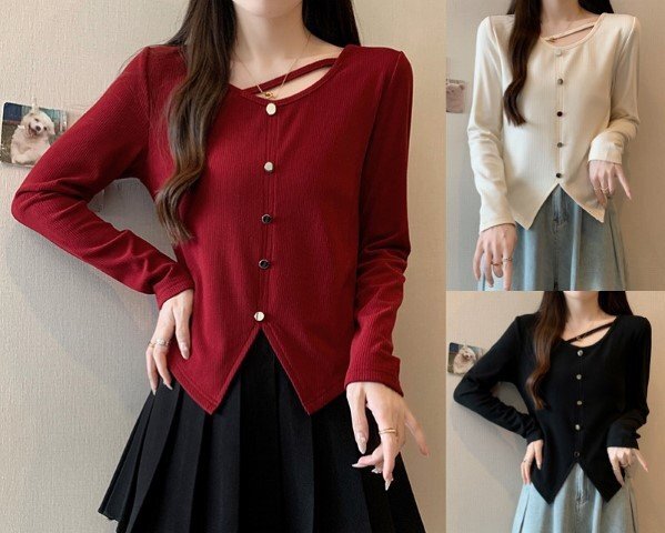 - トップス 長袖Tシャツ シンプル 無地 スリット入り カジュアル カットソー レディース 3XL ブラック