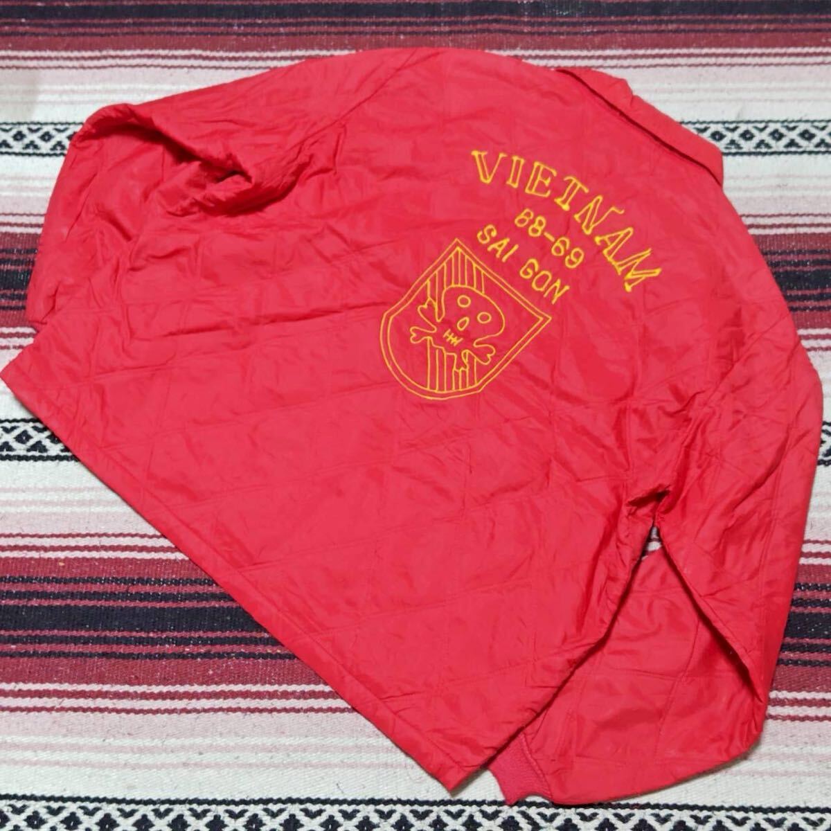 - 80s ビンテージ◎VIETNAM スカル刺繍◎【SWING-STER】キルティングブルゾン ナイロンジャケット PRIDEジッパー 古着 レッド XXL /Y37937ii