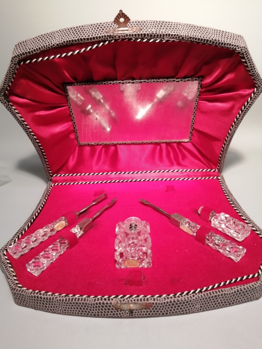 - クリスタル化粧セット 1950年代 西ドイツ WESMORE 硝子 香水 ネイルケア 化粧 鏡台 WRTHERS ROCKHAMPTON ロンドン 13AC09o2