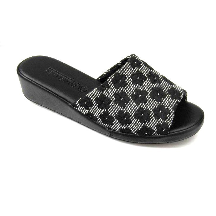 - ヒールアップ パンタロン スリッパ L パンジー9335 黒 ジャガード織 ルームシューズ 婦人 レディース 室内 事務所 オフィス 履き サンダル