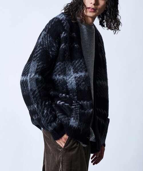 - 「FREAK'S STORE」 ニットカーディガン MEDIUM ブラック メンズ
