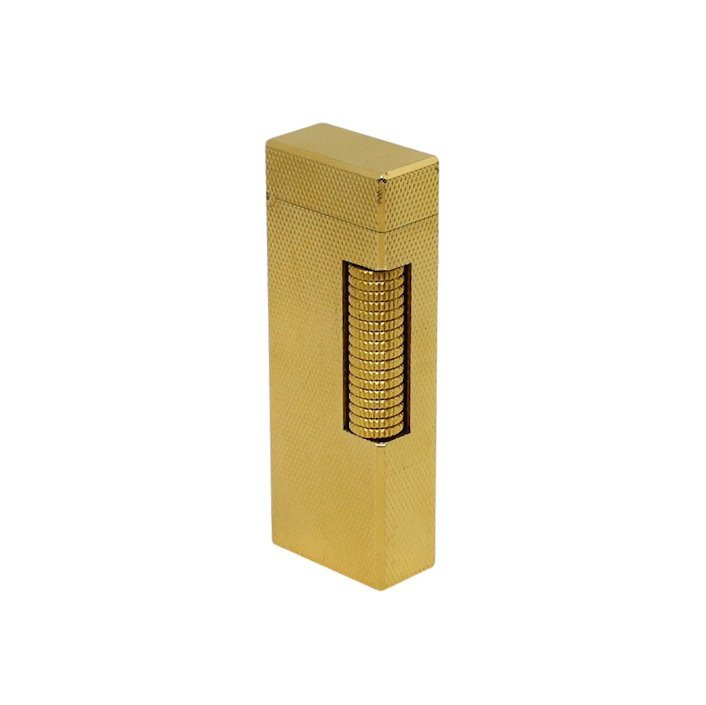 - ■ 1円 ~ 正規 中古品 着火◎■ ダンヒル Dunhill ■ スクエア ローラー式 ガスライター ■ バーレイ 総柄 ゴールド 金 高級 重厚 喫煙