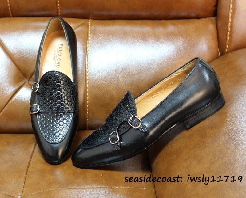 > 定価9万◆最高級 ローファー スリッポン 牛革 ビジネスシューズ 手作り 本革 レザーシューズ 個性 メンズ 通勤靴 結婚式 ブラック 27.5cm