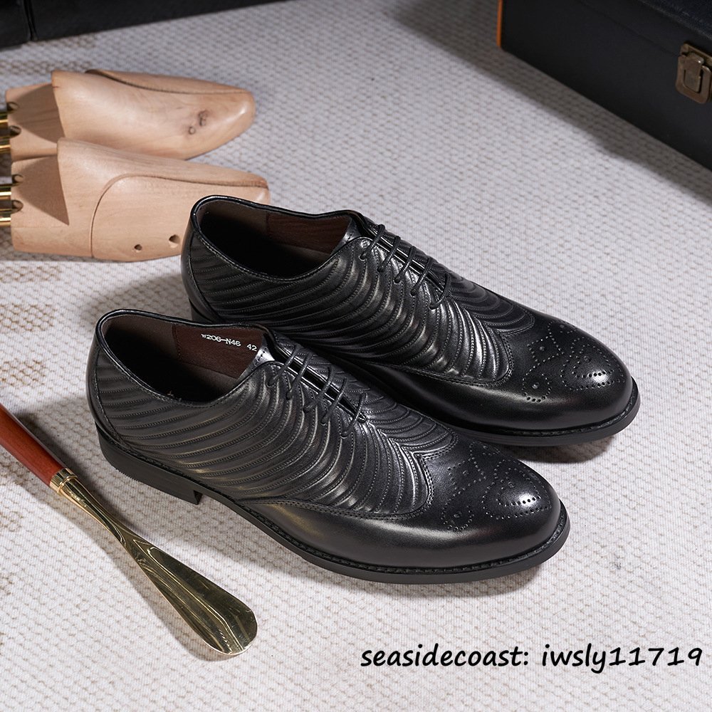 - 最高級★9万 ビジネスシューズ 新品 メンズ 本革 レザーシューズ 職人手作り 手塗仕上げ イタリア製 超希少 紳士靴 革靴 牛革 黒色 28.0cm