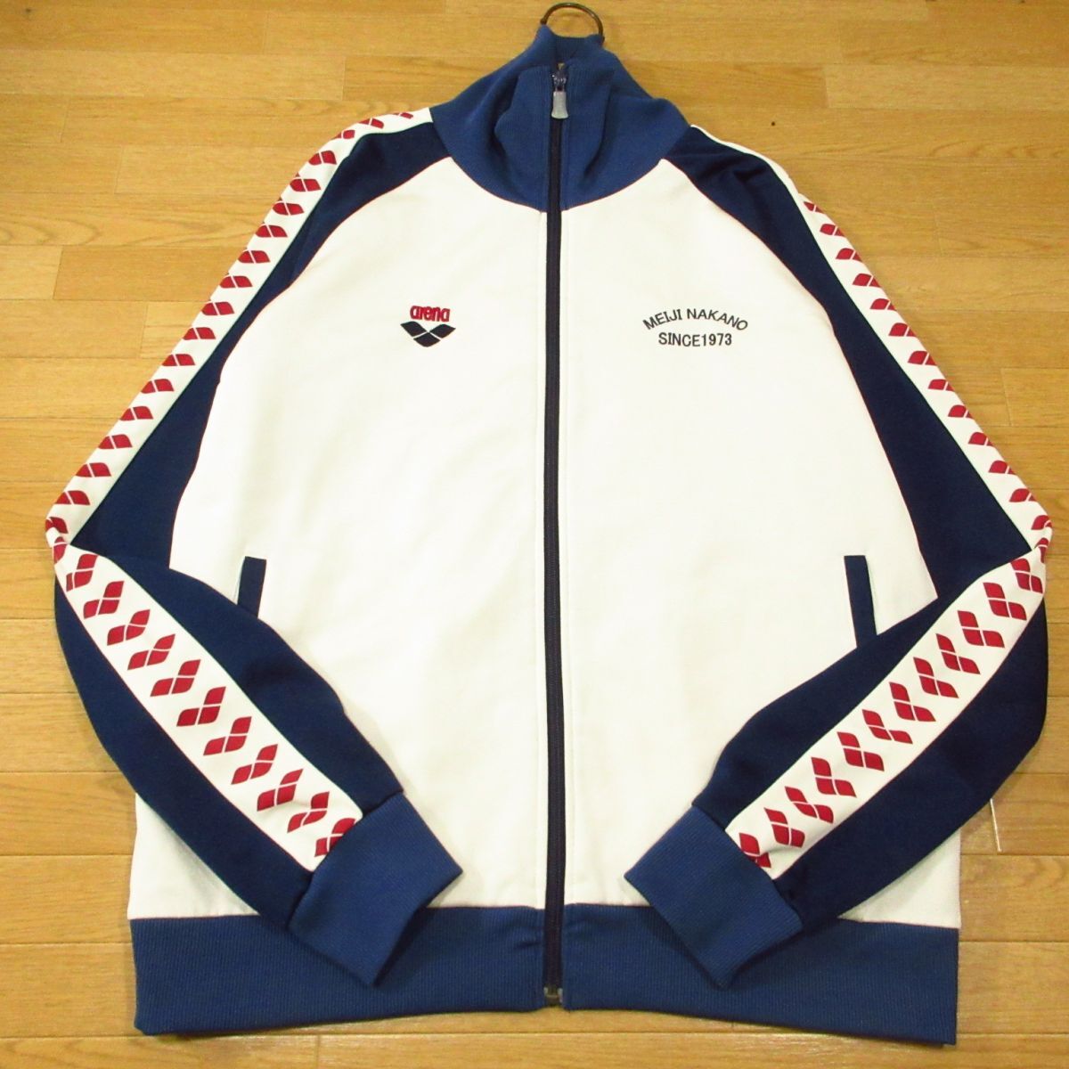 - ◎東京 明治大学付属高校 水泳 arena アリーナ ユニフォーム メンズ 白x紺 XL 裏起毛 ジャージ ジャケット 支給品 実使用◆AA5172
