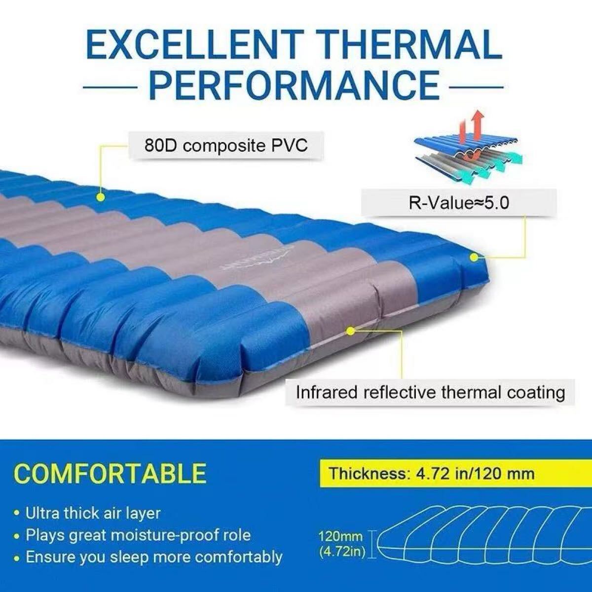- 断熱性能抜群 キャンプ用エアマット 120mm厚 超快適 80D複合PVC素材 R値5.0 防湿 防寒 足踏み式 アウトドア 登山 車中泊用 190×70cm