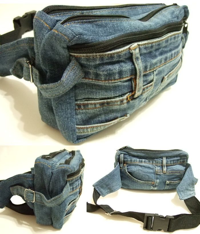 > 横浜最新 魅惑のデニムウエストバッグ♪斜め掛けリメイクバッグ 横巾25cm 縦15cm 二層収納まち4+4cm メンズレディース送料無料ξblξ ξ25