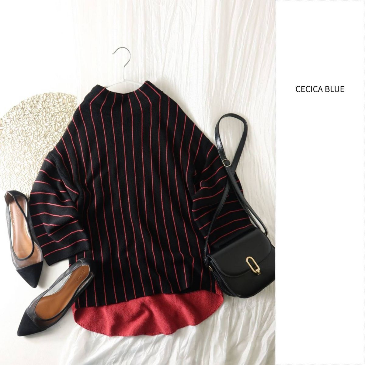 - セシカブルー CECICA BLUE☆ハイネック ストライプニット 40サイズ☆E-M 6300