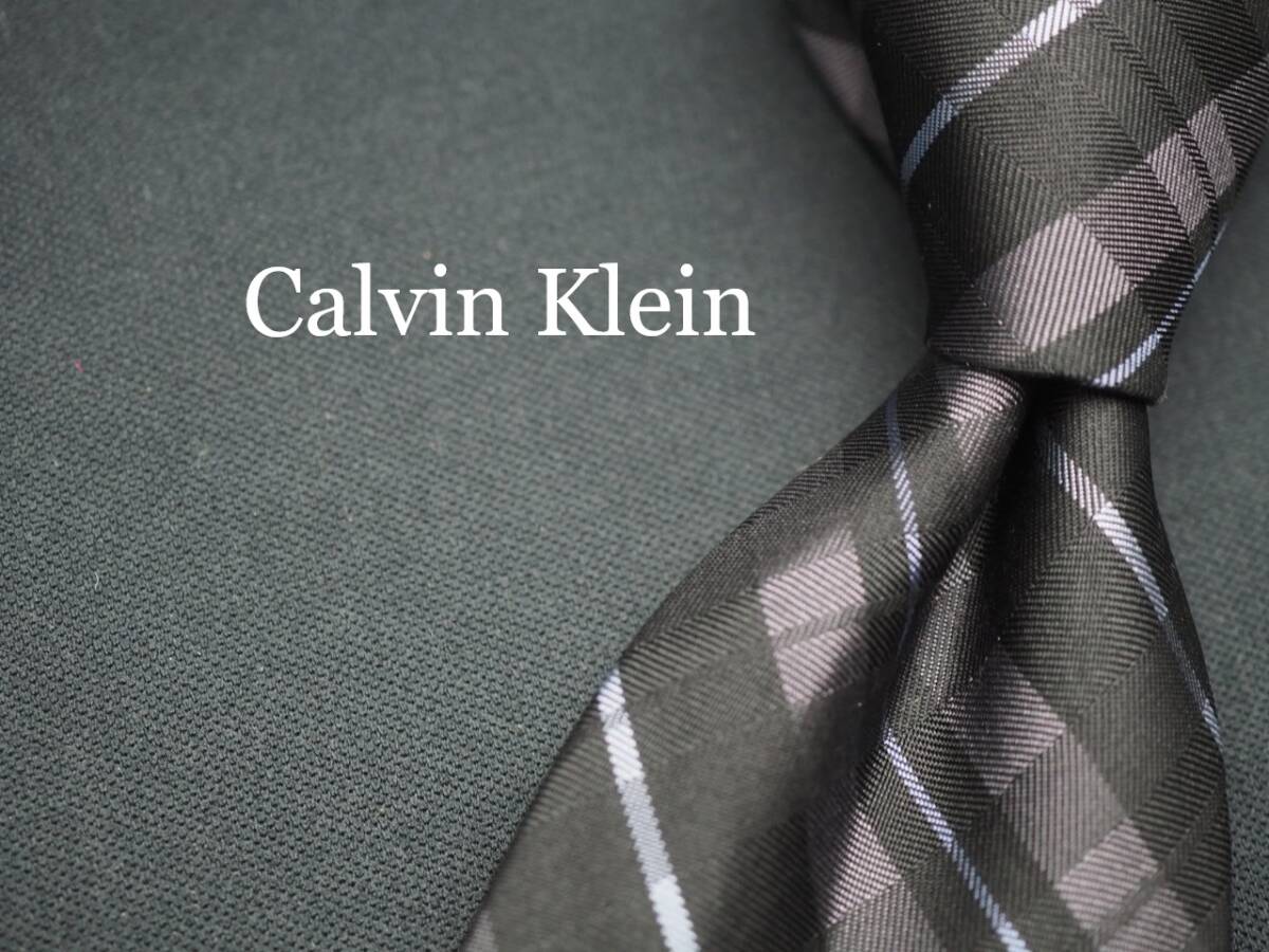 > 美品【Calvin Klein カルバンクライン】 G1367 細身 チェック ブラック系 SILK ブランド ネクタイ 古着 良品 転売 仕入