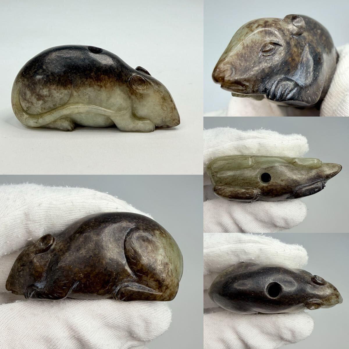 - 中国古美術 時代物 石彫 和田玉 白玉 根付 彫刻 玉彫 宝鼠 唐物 中国古玩 骨董品