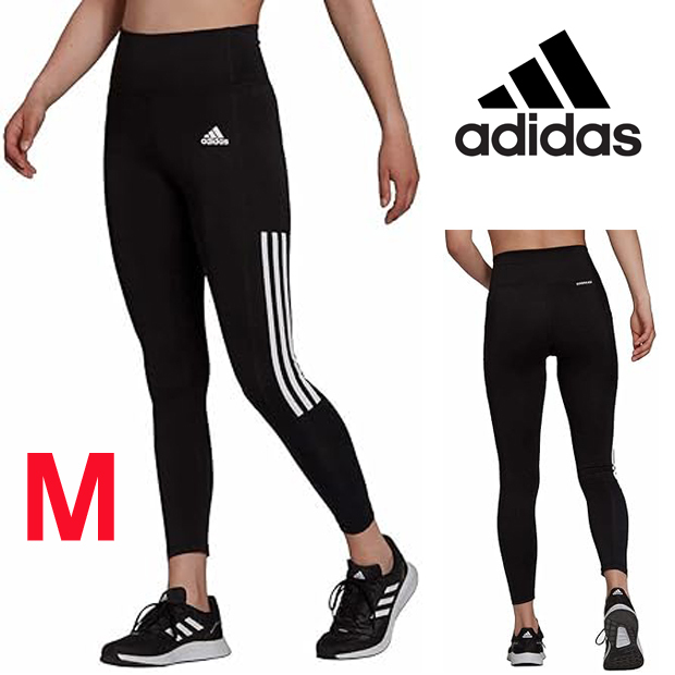 - 新品 M ★ adidas アディダス レディース レギンス タイツ メッシュ JME75 軽量 ハイライズ 3ストライプ 9分丈 ドライ 速乾 トレーニング