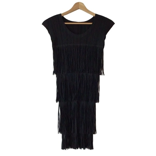 - プリーツプリーズ PLEATS PLEASE サイズ3 L - 黒 レディース ノースリーブ/ひざ丈/フリンジ ワンピース