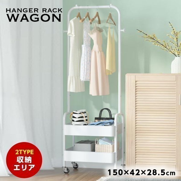 > ハンガーラック スリム キャスター 2段ワゴン付き 省スペース ハンガー パイプハンガー ポールハンガー 衣類収納 クローゼット 収納付き ホ