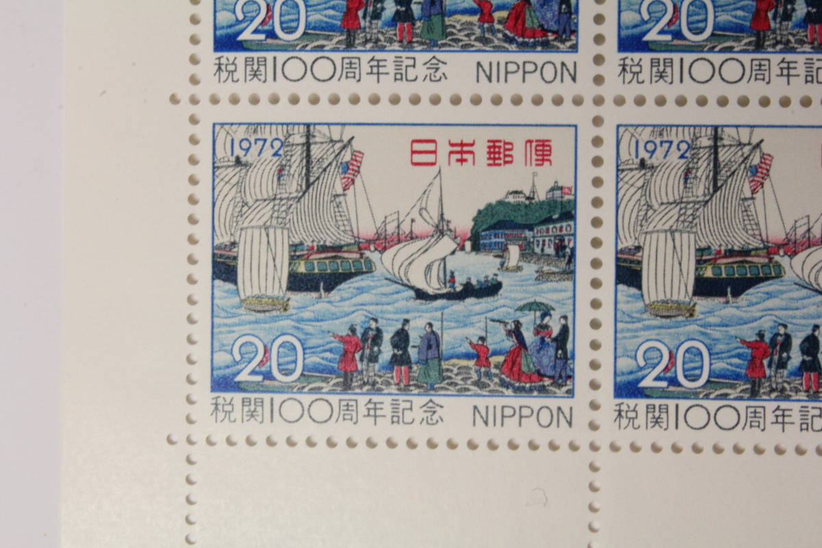 - 〇未使用20円切手シート1枚 1972年 税関100年 横浜波止場と異人館(安藤広重)