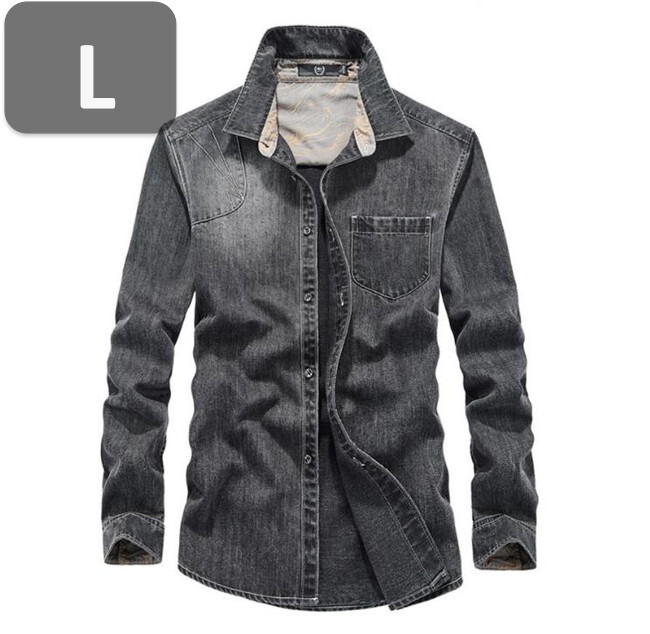 - メンズ 長袖 デニム シャツ グレー L 長袖 デニム シャツ 春秋【n187】