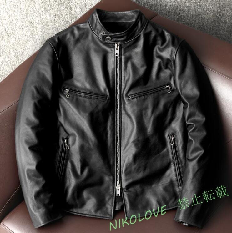 - 牛革 レザージャケット シングルライダース 革ジャン 本革 メンズファッション カウハイド バイクレザー アメカジ 機関車S~5XL AB154
