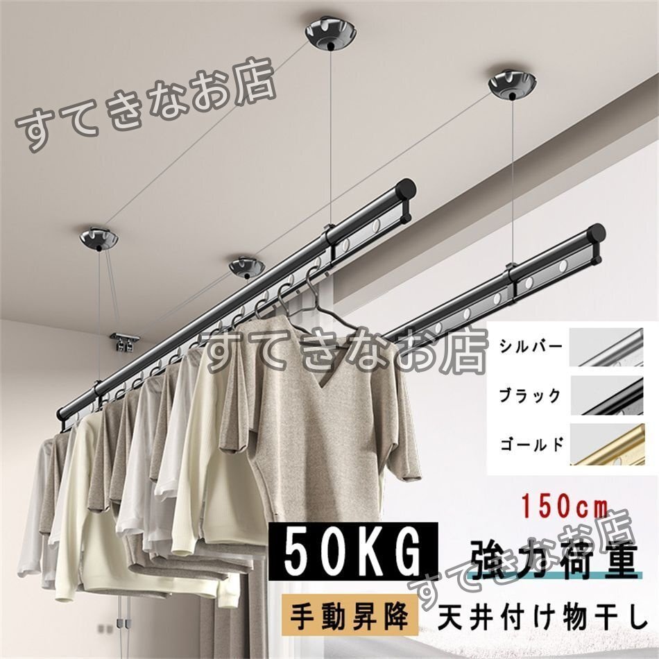 - 天井付け物干し 昇降カク ブラック | 洗濯干し 室内 洗濯物干し 物干し ものほし 物干 壁掛け 吊り下げ 天井 ハンガーバー ウォールバー