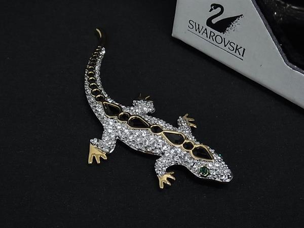 > 1円 ■美品■ SWAROVSKI スワロフスキー ラインストーン トカゲモチーフ ピンブローチ ピンバッジ アクセサリー ゴールド系 FP8883