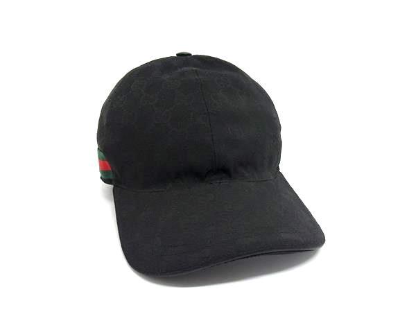 - 1円 GUCCI グッチ 200035 601401 シェリーライン GG柄 GGキャンバス×レザー ベースボールキャップ 帽子 表記サイズ S ブラック系 FU5612