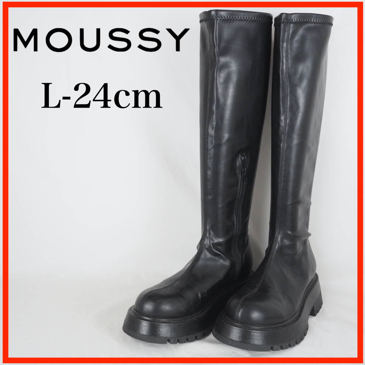 - GB0958*MOUSSY*マウジー*レディースロングブーツ*L-24cm*黒