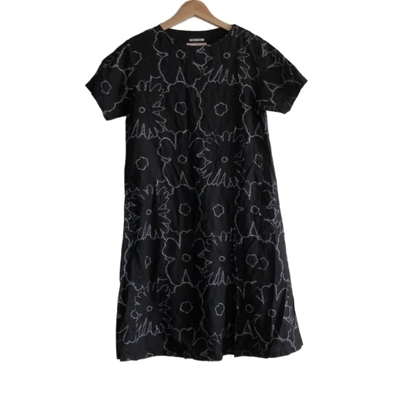 - ソウソウ SOU・SOU サイズS - 黒×グレー レディース クルーネック/半袖/ひざ丈/花柄/Le coq sportifコラボ 美品 ワンピース