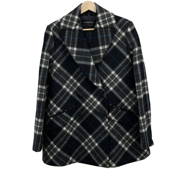 > スポーツマックスコード SPORTMAX CODE サイズ40 M - ダークネイビー×白×ブルー レディース 長袖/チェック柄/秋/冬 美品 コート