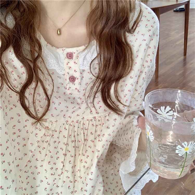 - 花柄 レース コットン パジャマ 上下セット フローラル ルームウェア かわいい系