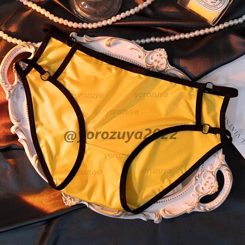 - 175-375-4 光沢 フルバック 艶々サテン ブリーフ パンティー【イエローXLサイズ】レディース 女性 下着 パンツ ランジェリー ショーツ .1