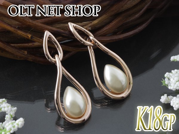 > パール ピアス レディース 真珠 ドロップ 大ぶり 揺れる 18金 18kコーティング ピンクゴールド 上品 / K18GP ビッグドロップパールピアス