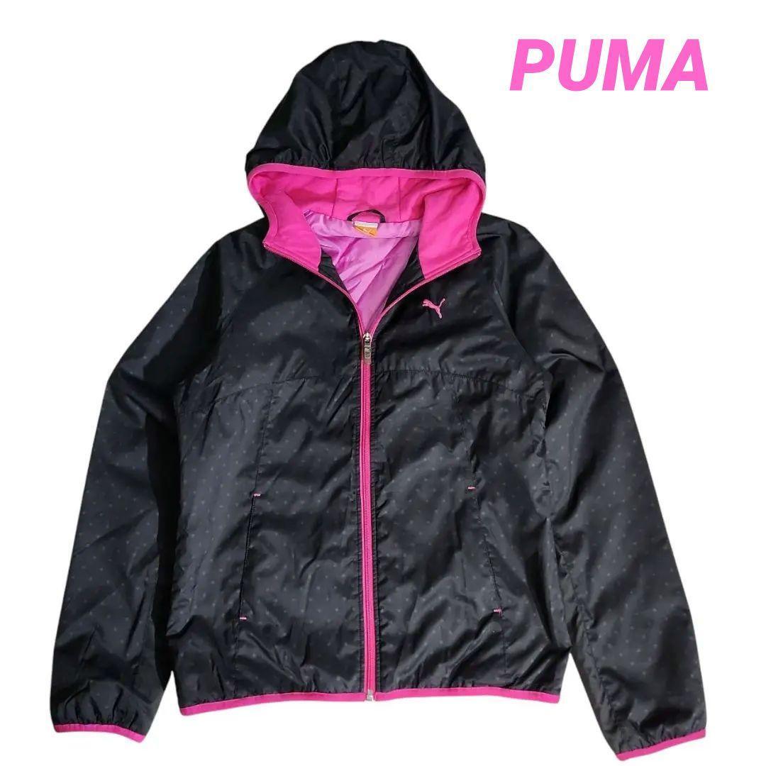- PUMA 星スター総柄・中綿ウインドブレーカー・フード付き・黒ピンク 表記サイズS パーカー ジップアップ 68533
