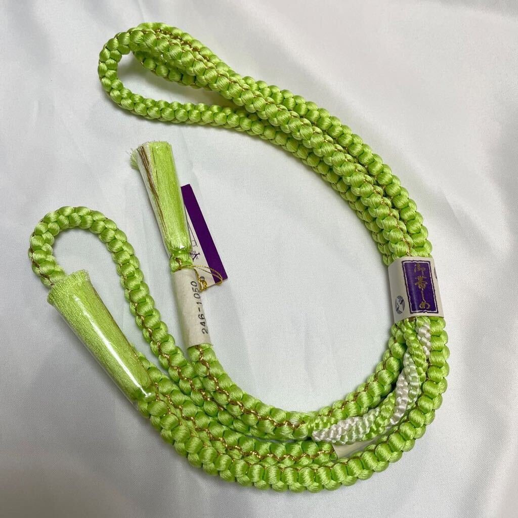 - 未使用 帯締 和装小物 着物 帯紐 和服 帯締め 帯じめ 帯ひも 絹 100% グリーン 黄緑 ゴールド 6 組紐 【中古】