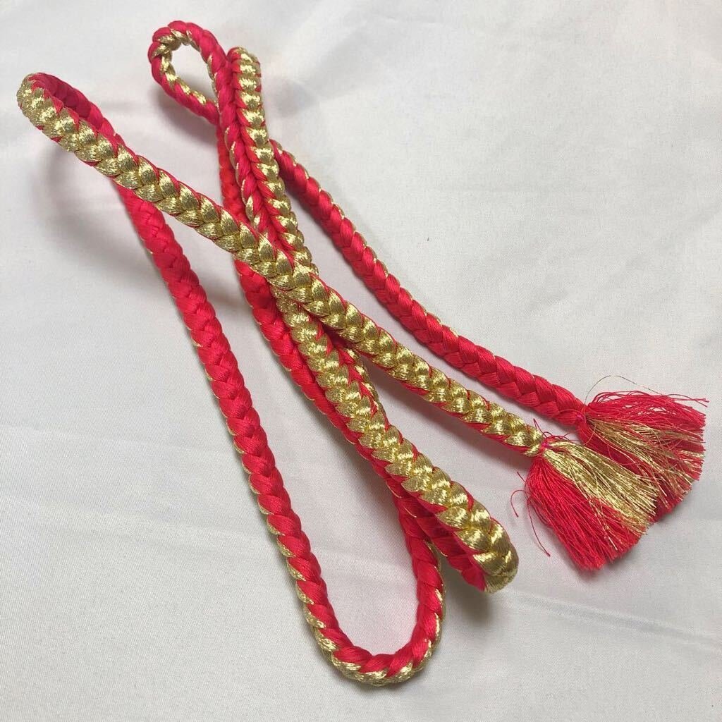 - 帯締め 帯留め 帯紐 帯留 帯締 和装小物 着物 帯紐 和服 和装 ラメ入り レッド系 ゴールド ⑦ 【中古】