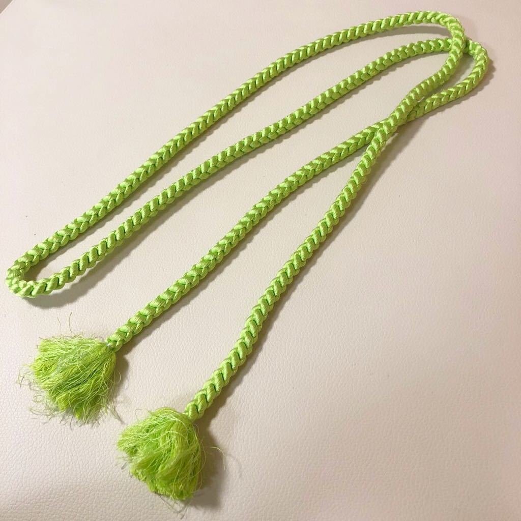 - 帯締め 帯留め 帯留 帯締 和装小物 着物 帯紐 和服 和装 黄緑 グリーン系 【中古】