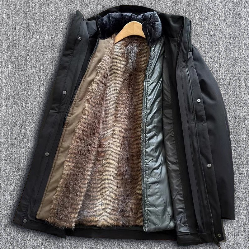 > 新品 国内未販売 極暖 フェイクミンクファー 中綿ジャケット 防寒 防風 ミディアム丈 メンズ 冬服 裏ボアで 厚手 コート 黒 T1380-4XL