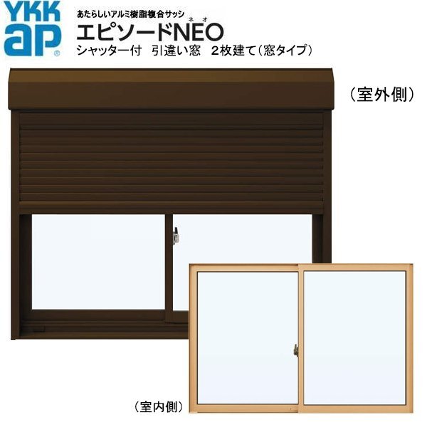 | 商品紹介 | ○ YKKAPのアルミサッシ エピソードNEO シャッター付アルミサッシ ○ 半外付タイプ ○ 2枚建て ○ アングル付仕様 【エピソードNEO シャッター付 引違い窓 選択項目】