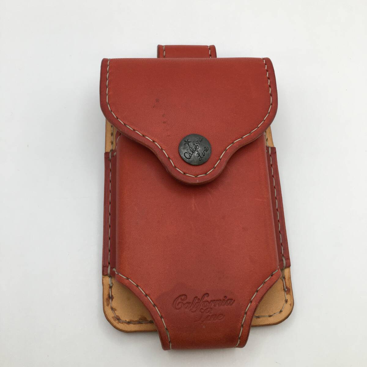 - カリフォルニアライン レザースマートフォンケース バイク 小物入れ 財布入れ レッド 革