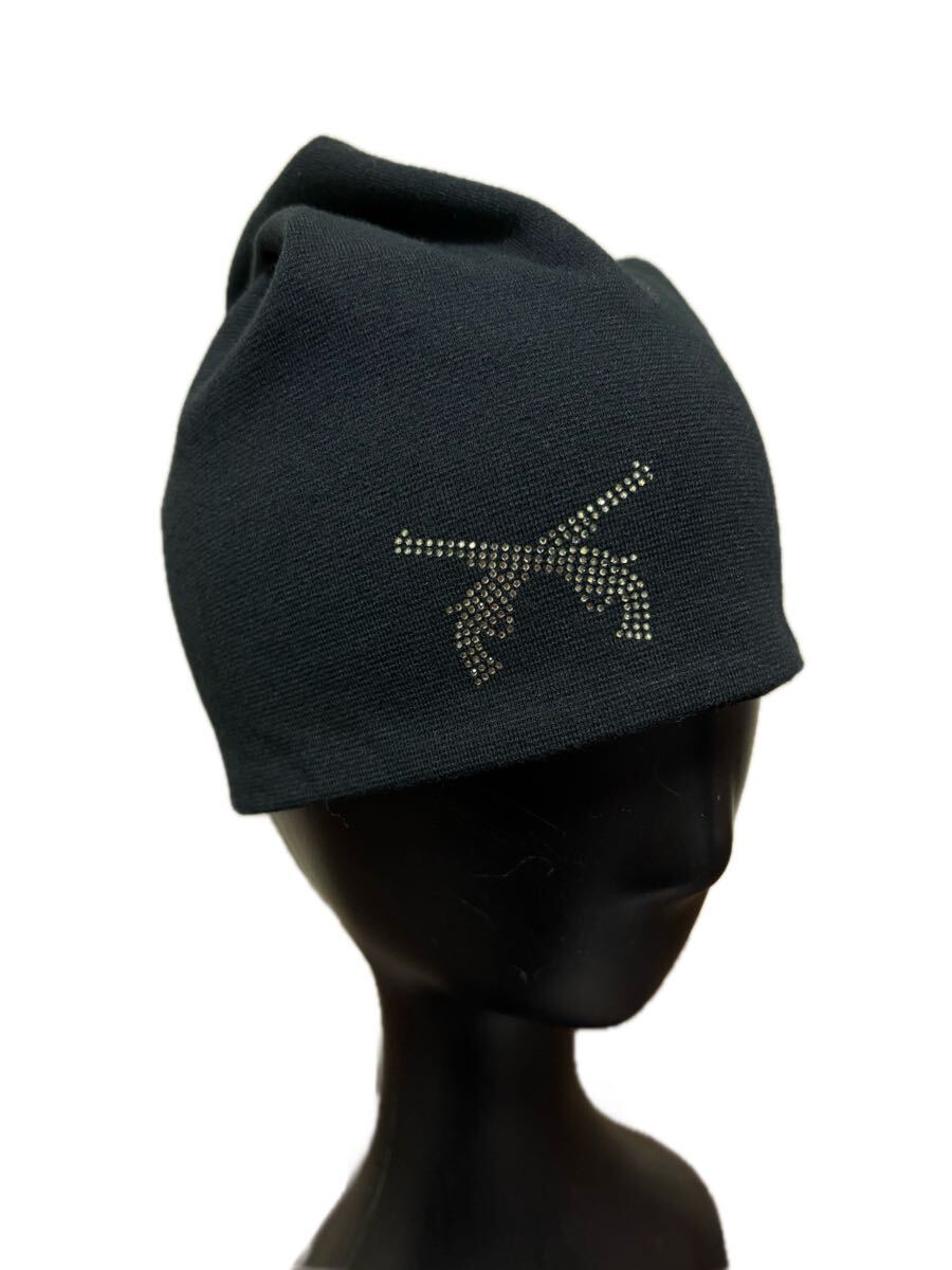 - roarコットン ニットキャップ 黒 1 ロアー ビーニー スワロフスキー ピストル 二丁拳銃 ラインストーン