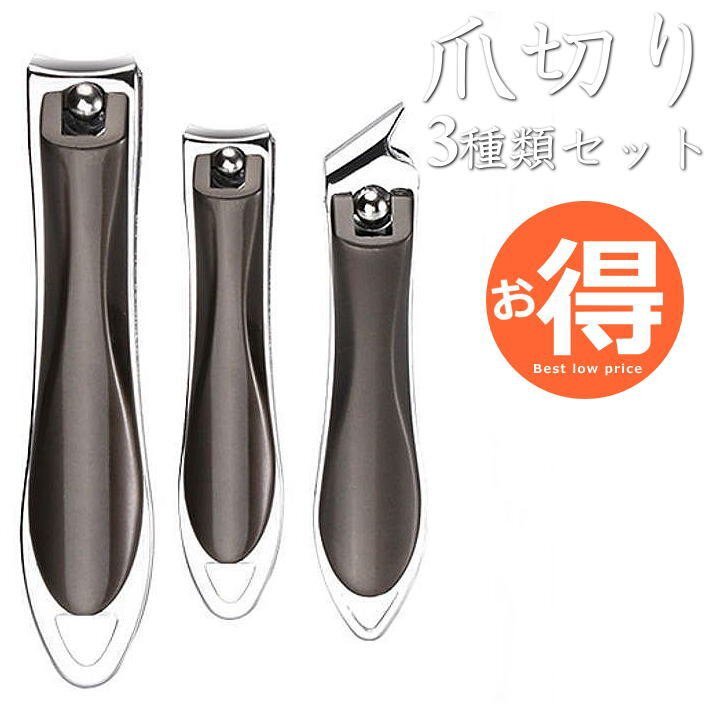 - 爪切り 3種類セット 斜め刃 小型 大型 ネイルケア ステンレス 7986682 ブラック 新品 1円 スタート