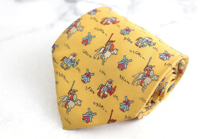 > ロエベ ブランドネクタイ 総柄 パネル柄 シルク スペイン製 PO メンズ イエロー LOEWE
