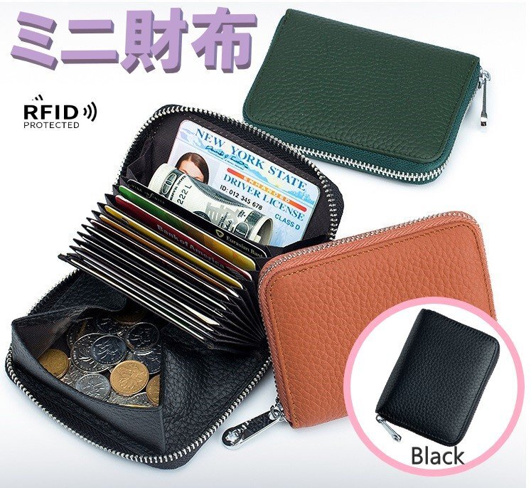 - ミニ財布 レディース ブラック 本革 財布 さいふ 小銭入れ がま口財布 薄型 コインケース カードケース スキミング防止 n512