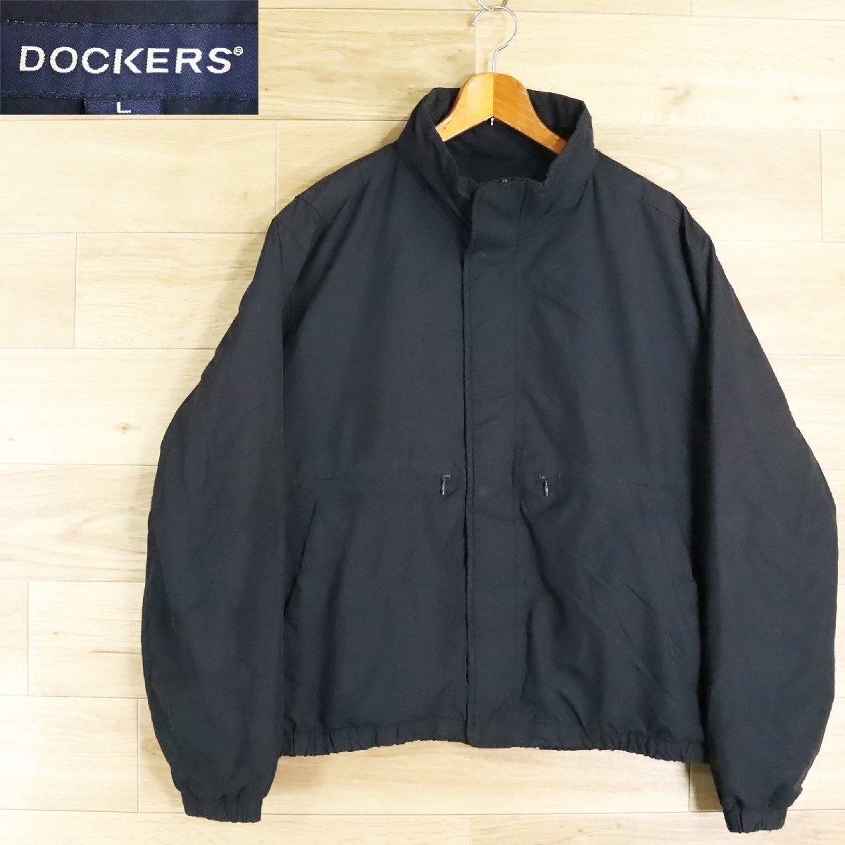 > B16S/D6.10-3 DOCKERS ドッカーズ スタンドカラージャケット 裏フリース ジップアップ ジャンパー ブルゾン L ネイビー 古着