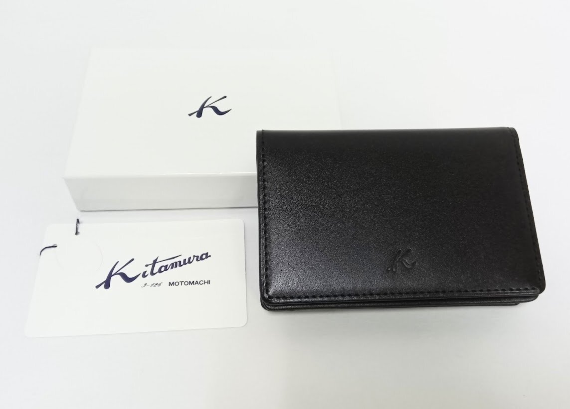> 未使用★Kitamura/キタムラ☆レザー・名刺入れ ブラック NH0778 15151 定価:9,300円 牛革 シンプル Kマーク 美品