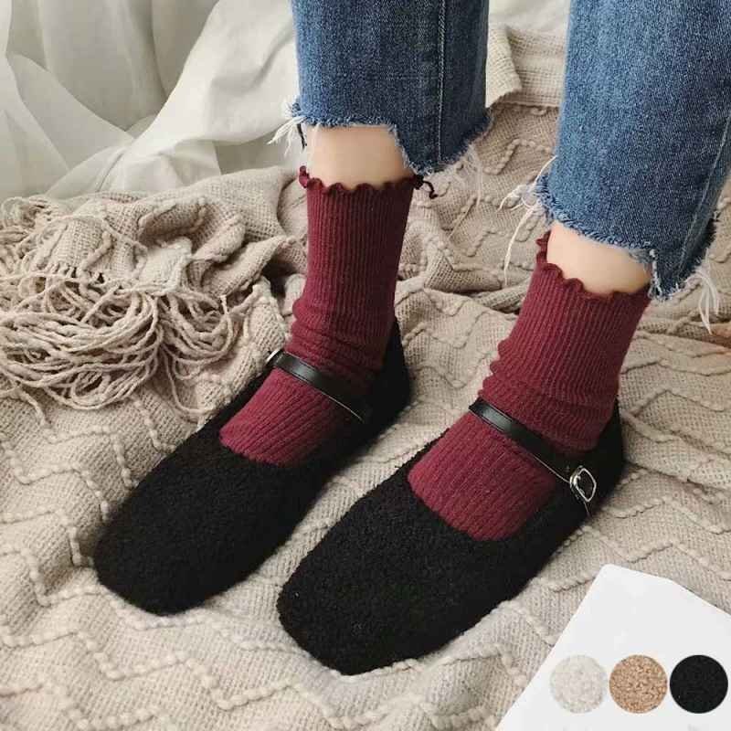 - パンプス レディース ファーシューズ 韓国 秋冬 裏起毛 靴 ぺたんこ 24.0cm(38) ホワイト