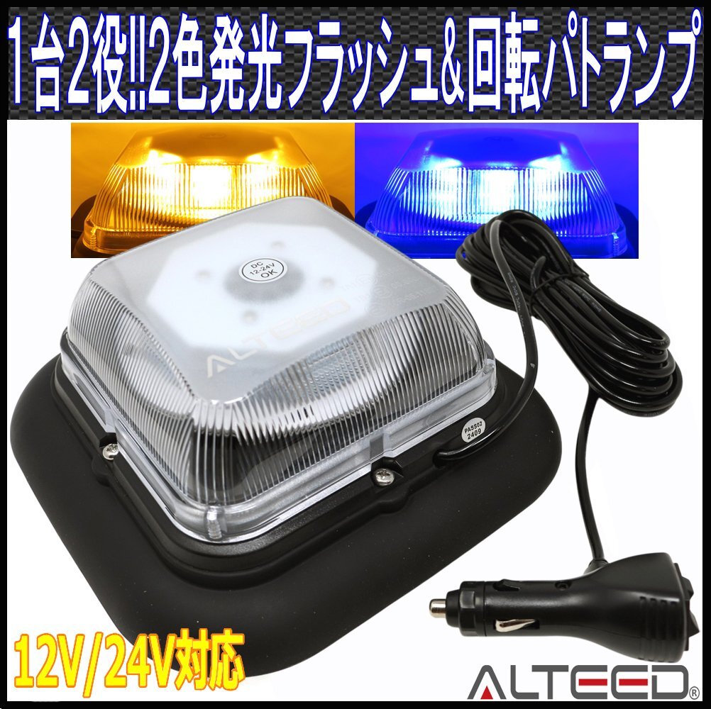 > 2色発光LED回転灯/黄色青色/1台2役高照度パトランプ/多彩フラッシュパターン/脱着式マグネットステー付属/12V-24V兼用 [ALTEED]