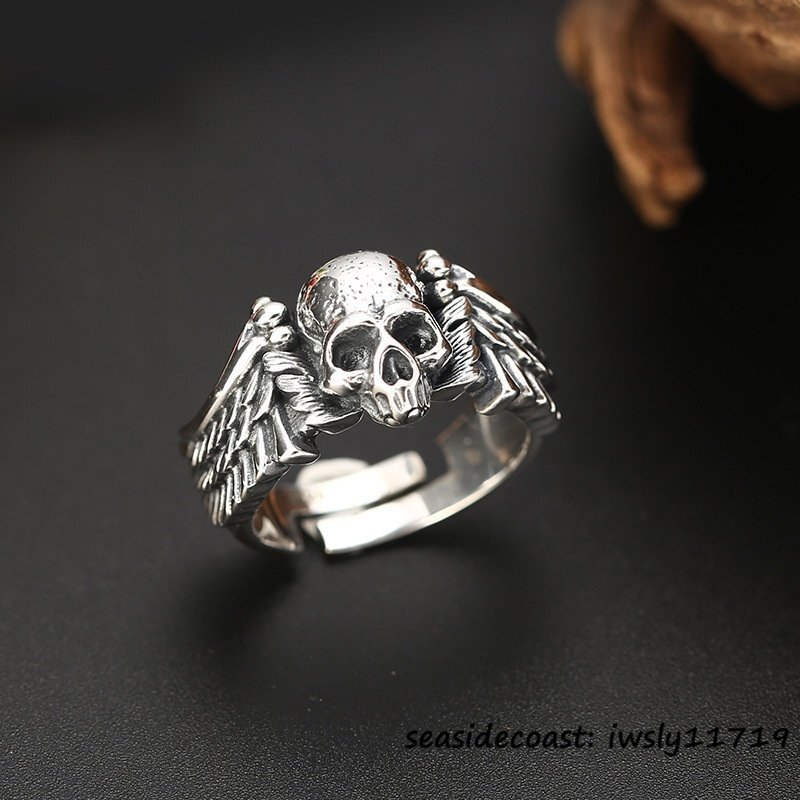 > 1円スタート ◆新品 指輪 シルバー925 リング 髑髏 ドクロ アクセサリー メンズ レディース 男女兼用 フリーサイズ 選択 調整可能
