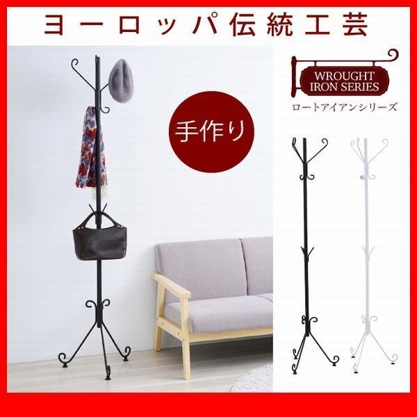 - ハンガー★ヨーロッパ風 アイアン家具 ポールハンガー/スタンド ハンガー掛け 洋服掛け/姫系 欧州 アンティーク調/黒 白/iria-0053/zz
